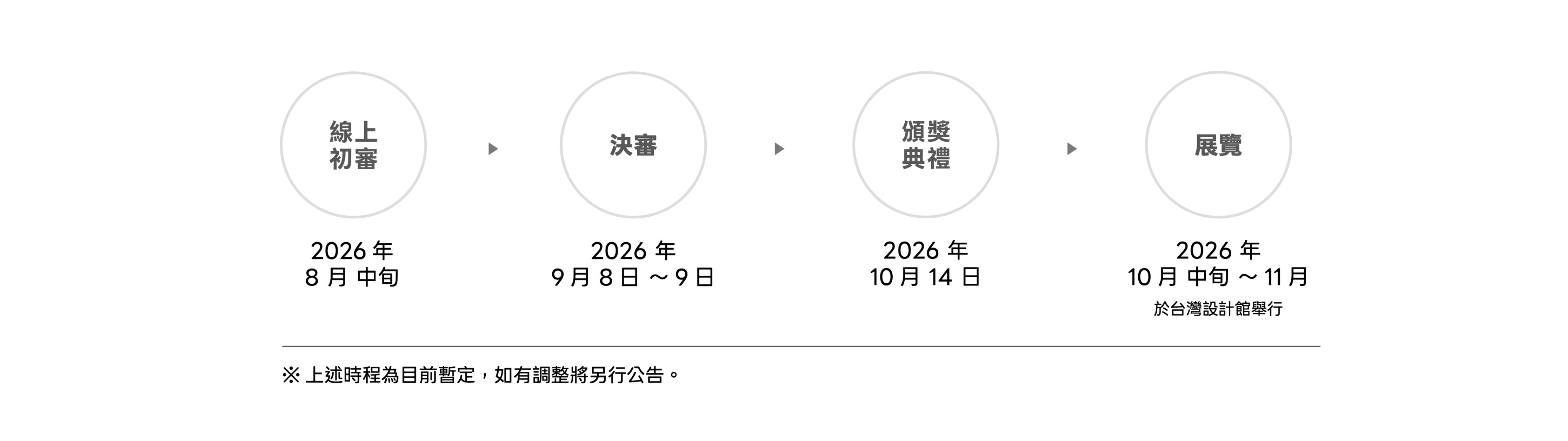 ■ 決審:依據晉級決審之作品進行實物評選,選出金獎、特獎獲獎作品,於頒獎典禮上公佈得主,並授予其證書。
