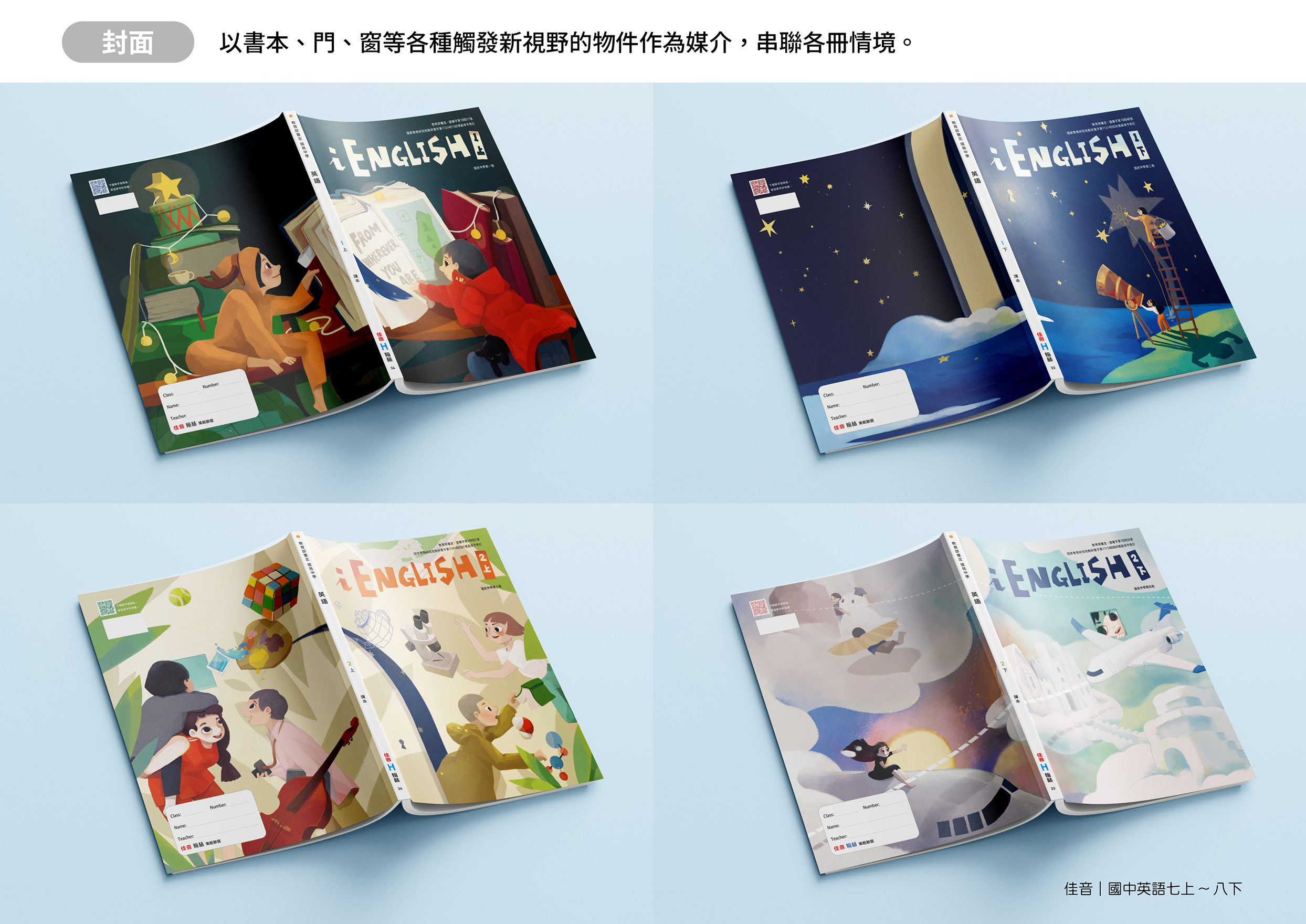 期望能跳脫原版封面以課文主題、城市、國家的主軸,創造更自由的想像空間,透過創意將不同場景加以連結,同時在各冊間創造連貫性。